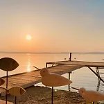 해변에 있는 Topartihaz은 일광판, 일광판, 소풍 공간 등을 제공합니다.